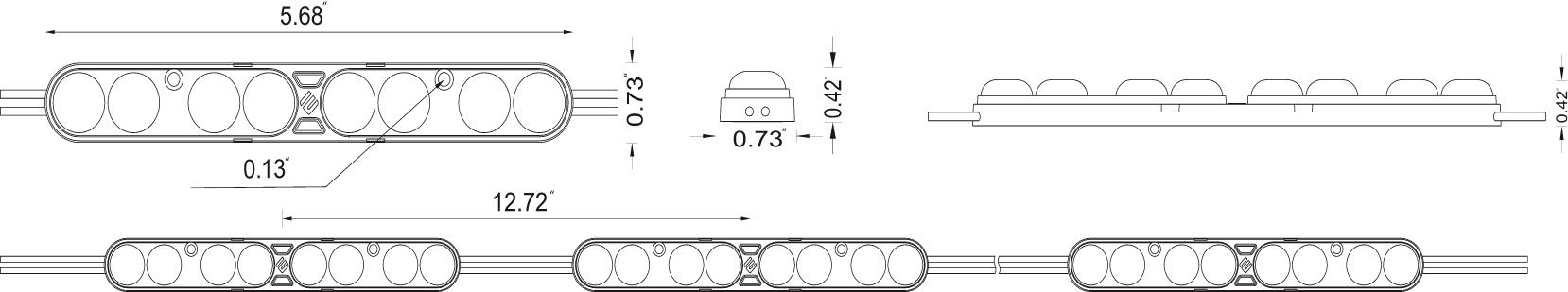 The OM-8D series is a top-of-the-line choice for sign cabinets and also for large channel letters. This is made with a special molding process for long-lasting quality. These are very bright, resistant to harsh weather and UV rays, and available in 12v and 24v options.